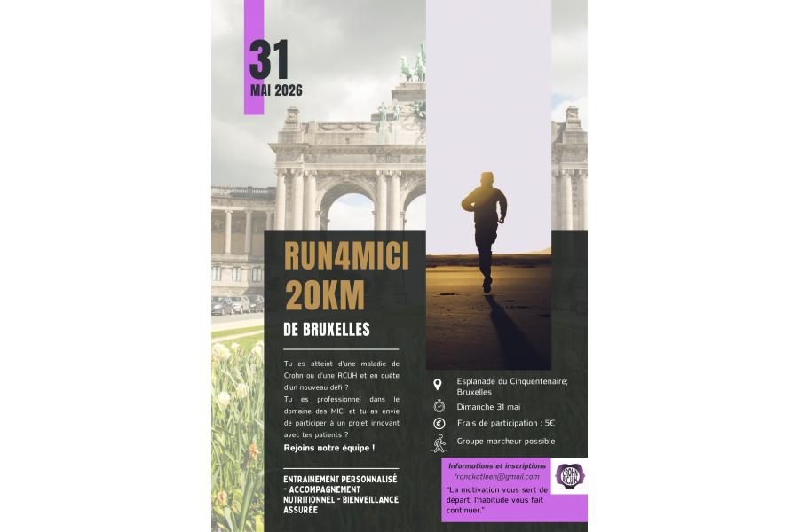 On 31 May, ASBL Crohn-RCUH (the French IBD patient association) will take part in the 20 km of Brussels, bringing together a team of 73 runners to raise awareness of IBD.